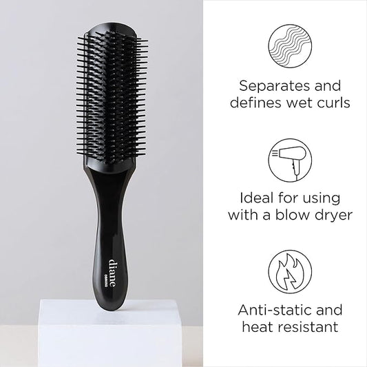 Diane Nylon Pin Styling Hairbrush for Detangling, Separating, Shaping, and Defining Wet or Curly Hair, Heat-Resistant, Anti-Static, Hair Care Essential, Black
