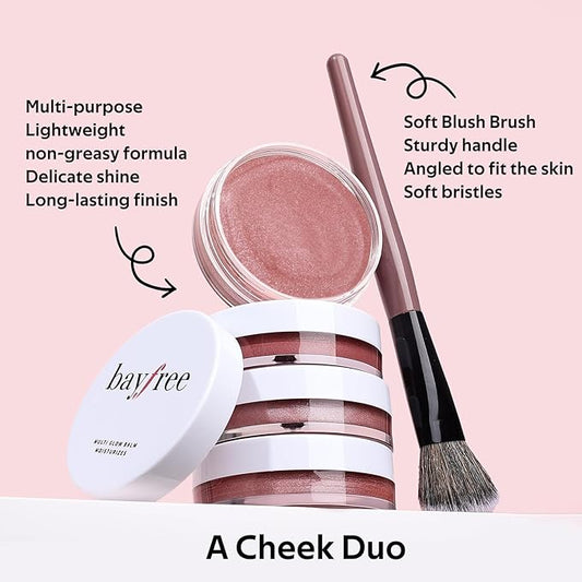 Multi Cream Blush & Blush Brush Set, Korean Makeup Blush for Cheeks, Multi-Use Face Balm, Lightweight & Hydrating, Blendable Color, Non-Greasy, Soft Bristles for Radiant Finish (Pink Sakura)