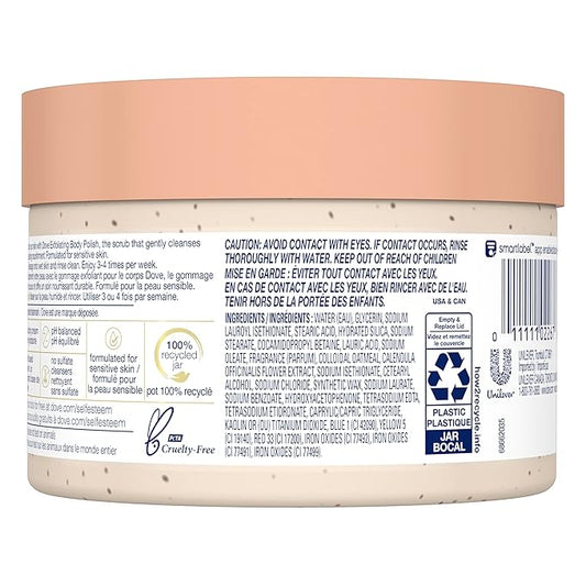 Dove Exfoliating Body Polish Scrub for Silky Skin Oatmeal & Calendula Oil Body Scrub Exfoliates & Gives Lasting Nourishment 10.5 oz