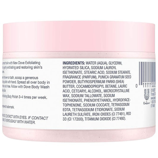 Dove Exfoliating Body Polish Scrub For Silky, Soft Skin Pomegranate & Shea Butter Body Scrub Exfoliates and Provides Lasting Nourishment 10.5 oz