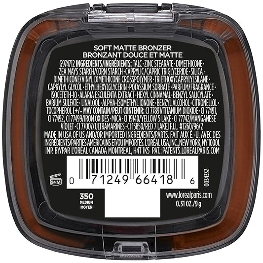 L'Oreal Paris Infallible Up to 24H Fresh Wear Soft Matte Longwear Bronzer. Waterproof, heatproof, Transfer, humidity and sweatproof, Medium, 0.31 oz