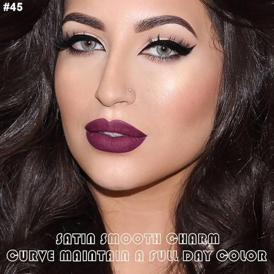 evpct 2Pcs Light Plum Purple Matte Liquid Lipstick Lip Gloss Stain and Retractable Lip Liner Makeup Set for Women Long Lasting Waterproof 24 Hours Lipstick labial mate larga duracion 24 45#