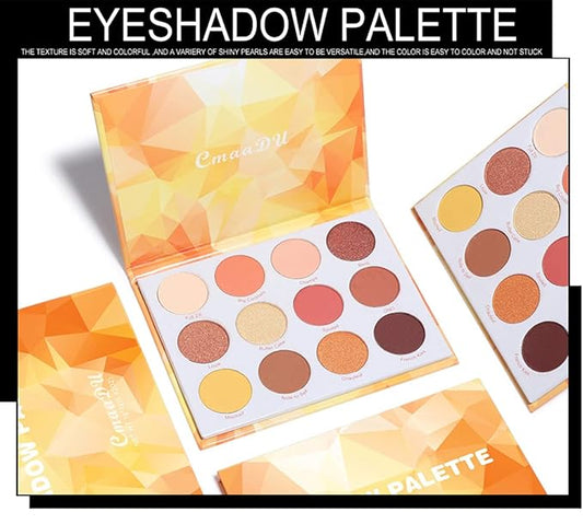 Glitter Matte Orange Yellow Eyeshadow Palette, 12 Colors Shimmer High Pigmented Eyeshadow Makeup Palette Lasting Waterproof Brown Eyeshadow Palette for Girl Women