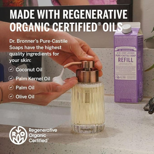 Dr. Bronner's Pure-Castile Liquid Soap Bottle & Refill Carton - Made with Regenerative Organic Certified Oils, 82% Less Plastic-18-in-1 Uses for Face, Body Wash, Hand Soap Refill- Lavender,32oz