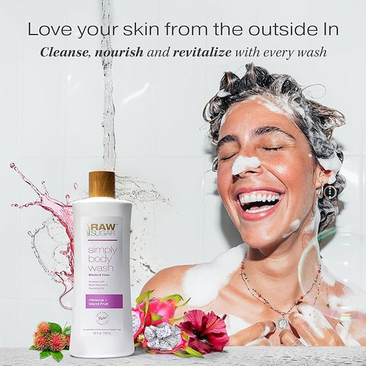 RAW SUGAR Simply Body Wash - Hibiscus + Island Fruit (25 Fl Oz, Pack of 1) Moisturizing & Soothing Bath & Shower Gel, Formulated without Sulfates & Parabens, Vegan