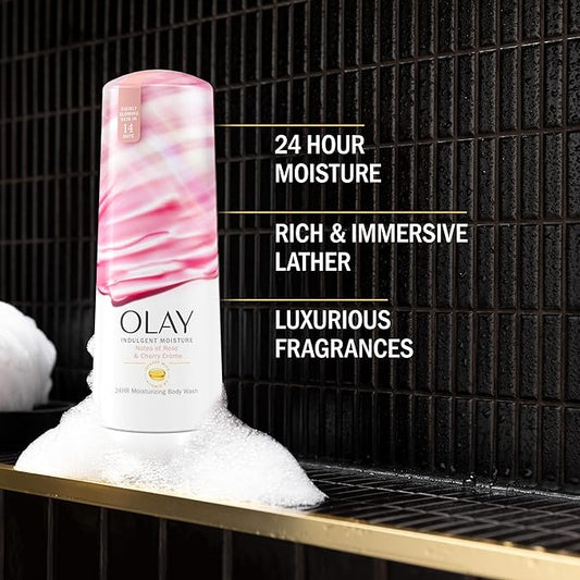 Olay Body Wash for Women, Indulgent Moisture, 24hr Moisturizing & Nourishing Formula, Infused with Vitamin B3 Complex, Luxurious Fragrances, Rose & Cherry Creme Scent, 20 fl oz