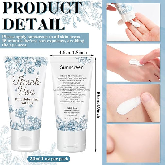 24 Set Travel Size Sunscreen Gifts for Wedding Favor Bridal Shower Mini Sunscreen Lotion 1 oz SPF 30 Water Resistant Sunscreen Lotion with Organza Bag and Tag Thank You for Celebrating with Us