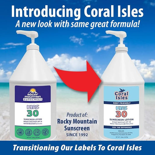 Rocky Mountain Sunscreen | KIDS SPF 30 Lotion -Broad Spectrum UVA/UVB Protection | Hawaii 104 Reef Act Compliant (Oxybenzone & Octinoxate Free) | Water Resistant 80 Min. | Gallon with Pump (128 Fl Oz)