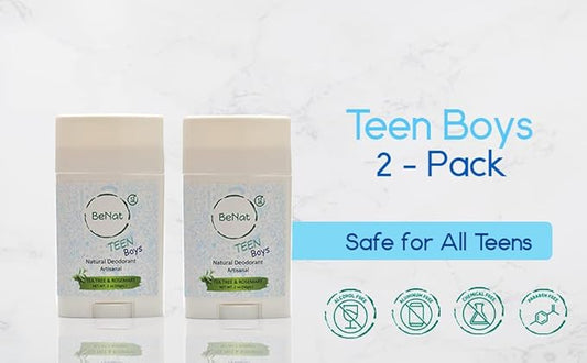 2-Pack All Natural Deodorant For Teen Boys 100% Natural Aluminum-Free Carcinogen Free Kids Deodorant For Boys Clinically Proven To Be Safe For Children and Teenagers