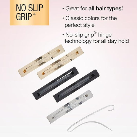 Scunci by Conair No-Slip Grip Stay Tight Barrettes - hair barrettes for women - hair accessories for women - hair clips - Gold, Black and Silver - 6 Count
