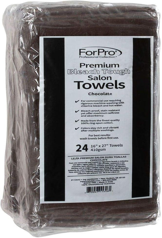 ForPro Premium Bleach Tough Salon Towels, Chocolate, 100% Cotton, Bleach-Proof Towels, Stain Resistant, 16” W x 27” L, 12-Count