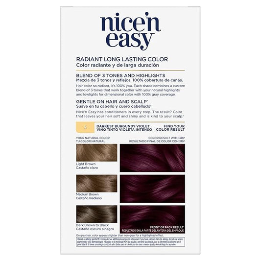 Clairol Nice'n Easy Permanent Hair Dye, 3RV Darkest Burgundy Violet Hair Color, Pack of 2