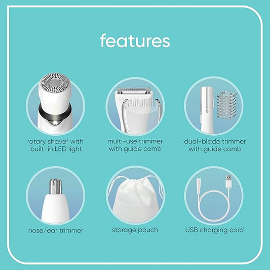 Conair GIRLBOMB All-in-One Face/Body Trimmer and Shaver Set for Women, Wet/Dry, Rechargeable