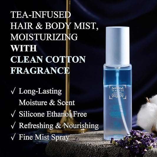 Cotton Blue Mallow Tea Perfume Hair & Body Mist, Hair and Body Perfume Spray for Dry Skin, Moisture Balance, Soothing, Nourishing, Long-Lasting Fragrance, Cotton Scent