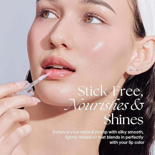 MAKE Beauty Serum Balm Hydrating Lip Oil. Vegan moisturizing lip gloss with plumping effect. Lip treatment cream for soft, smooth, shiny lips - Shade, Halo Moon