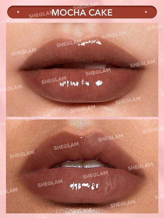 SHEGLAM Glaze Daze Lip Gloss Shiny Tinted Lip Gloss High Gloss Finish Plumping Lip Care Nourishing Not Easy to Fade Liquid Lip Cosmetics-Mocha Cake