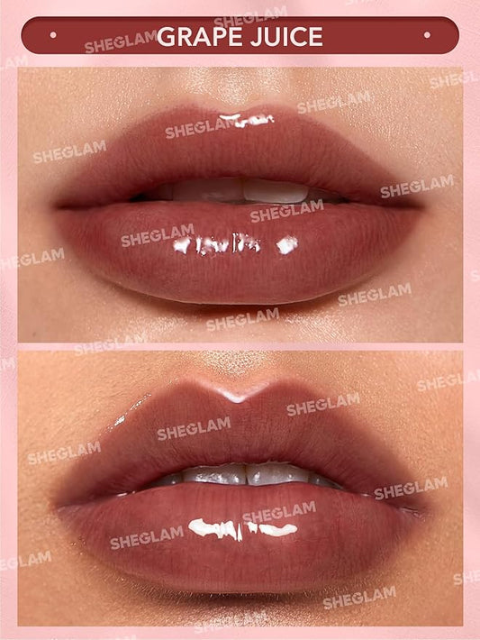 SHEGLAM Glaze Daze Lip Gloss Shiny Tinted Lip Gloss High Gloss Finish Plumping Lip Care Nourishing Not Easy to Fade Liquid Lip Cosmetics-Grape Juice