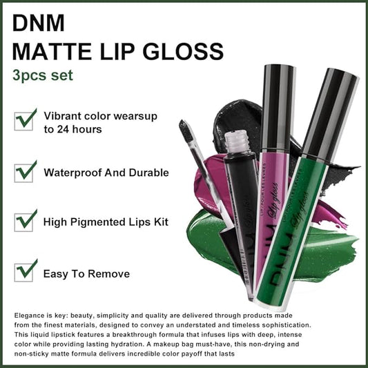 evpct 3Pcs Dark Black Grape Plum purple Emerald Green Matte Liquid Lipstick Lip Stain Sets for Women Matte+Lipstick Long Lasting 24 hr Hours Magic Lipstick 24 Hours original Waterproof 18#