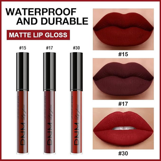 evpct 3Pcs Dark Red Purple Matte 24-hour Liquid Lipstick Sets, Matte Lipstick Lip Stain Long Lasting 24 Smudge Waterproof Lip Gloss Gift Set Matt Lipsticks Set Matt Liquid Women Makeup Lipstick 06