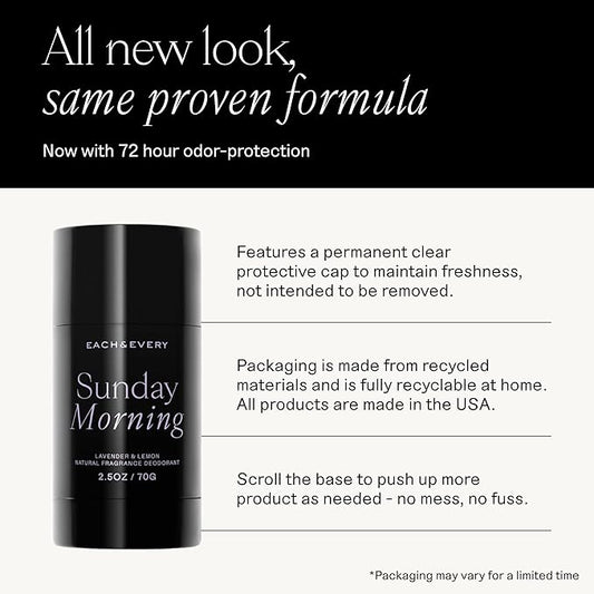 Each & Every Aluminum Free Deodorant for Women & Men, Lavender & Lemon + Cedar & Vanilla - All Natural Deodorant for Sensitive Skin, EWG Verified - Clean, Baking Soda-Free, Plant-Based - 2.5oz, 2 Pack