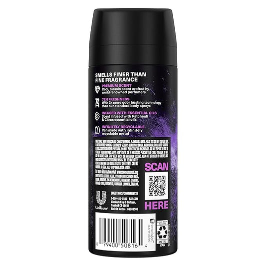 AXE Fine Fragrance Collection Premium Body Spray Purple Patchouli with Citrus + Oak Essential Oils 3 Count with 72H Odor Protection Aluminum-Free 4 oz