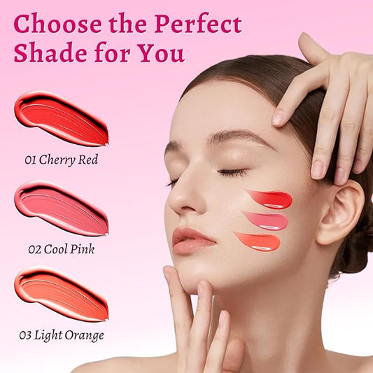 UCANBE 3PCS Liquid Blush Makeup Set – Dewy Cream Cheek Tint for Face – Blendable Long-Lasting Lightweight Natural Flushed Look (Cherry Red, Cool Pink, Light Orange)