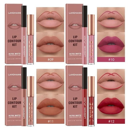 LANGMANNI 4pcs Matte Lipstick with Lipliners Durable Makeup Set,Long-Lasting Non-Stick Cup Not Fade Waterproof Pigmented Velvet Lipgloss Kit Beauty Cosmetics Makeup Gift for Girls(#9+10+11+12)