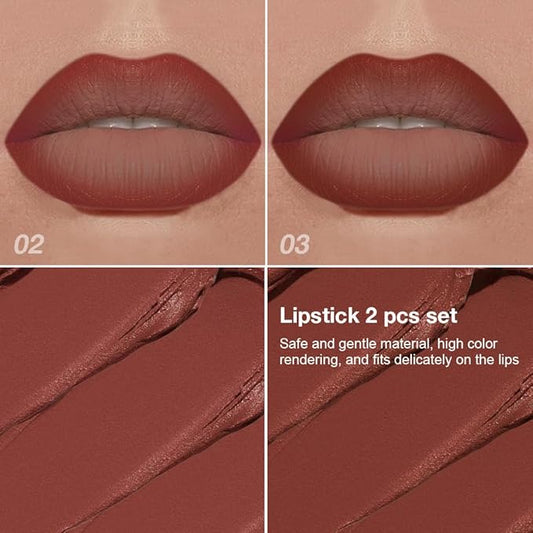 2Pcs Lipstick and Lip Liner Combo, Lip Liner and Lip Gloss Kit for Women, Matte Lip Pencil and Smooth Hydrating Lipstick with Sharpener, Non-Stick Lip Makeup Set