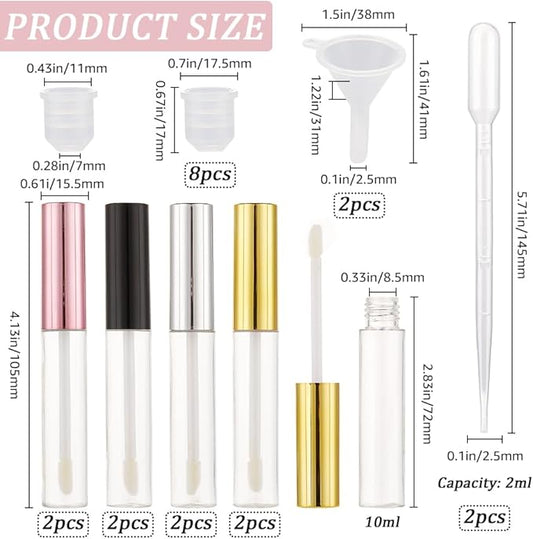 GORGECRAFT 8PCS 10ml Empty Lip Gloss Tubes with Wand Tip Refillable Lipgloss Balm Bottle Clear Plastic Cosmetic Gloss Container Lipstick Bottle with Droppers Funnel for Travel DIY Lip Samples