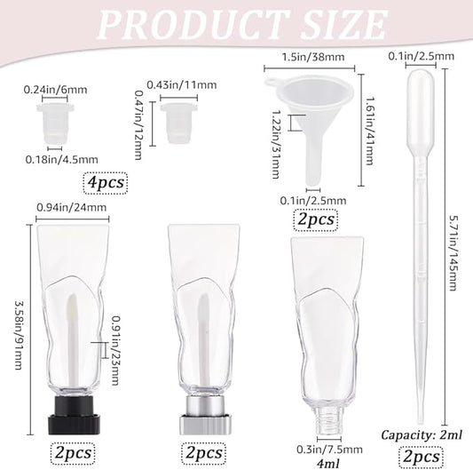 GORGECRAFT 4Pcs 4ml Lip Gloss Tubes Empty Refillable Soft Lipgloss Balm Tubes with Brush Glaze Container with Silver Black Square Lid Rubber Inserts Droppers Funnel for Travel Samples DIY Cosmetic