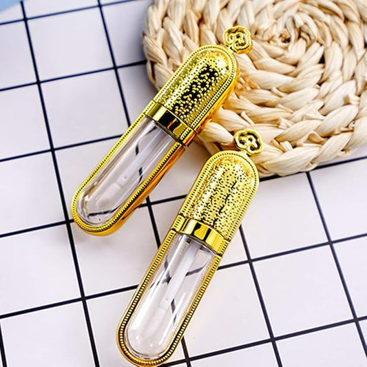 5 Pcs Empty Lip Gloss Tubes, Clear Plastic Gloss Container with Wand Refillable Lip Balm Bottle 10ml Lip Gloss Container for Lipstick Samples, Lip Balms(Gold Tube Cap)