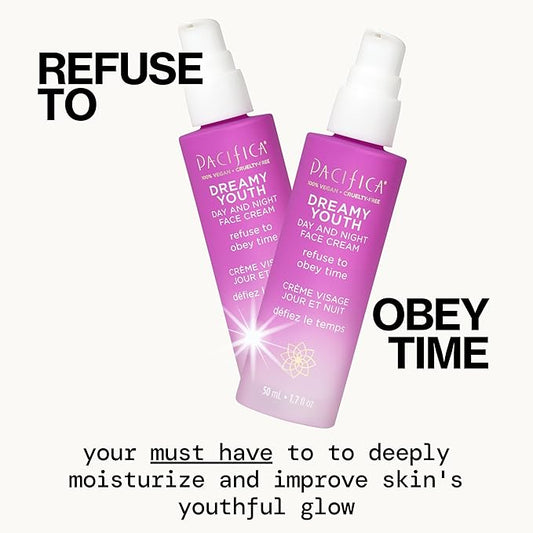 Pacifica Face Moisturizer Lotion - Dreamy Youth Day & Night Face Cream, Daily Skincare, Grapeseed Oil, Peptides, Hydrating, Facial Lotion, Skincare, For Dry Skin, Vegan, 1.7 fl oz (1 Count)