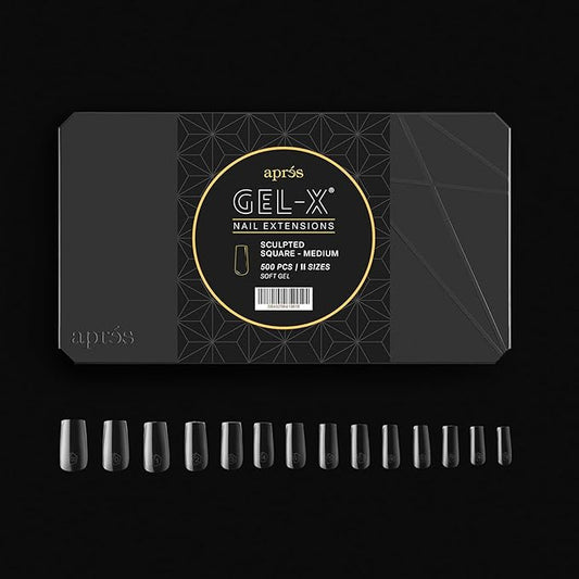 Aprés Gel-X® Scupted Square Medium Tip Box | 500pc Gel-X Tips, 11 Sizes 00-9, Premium Quality