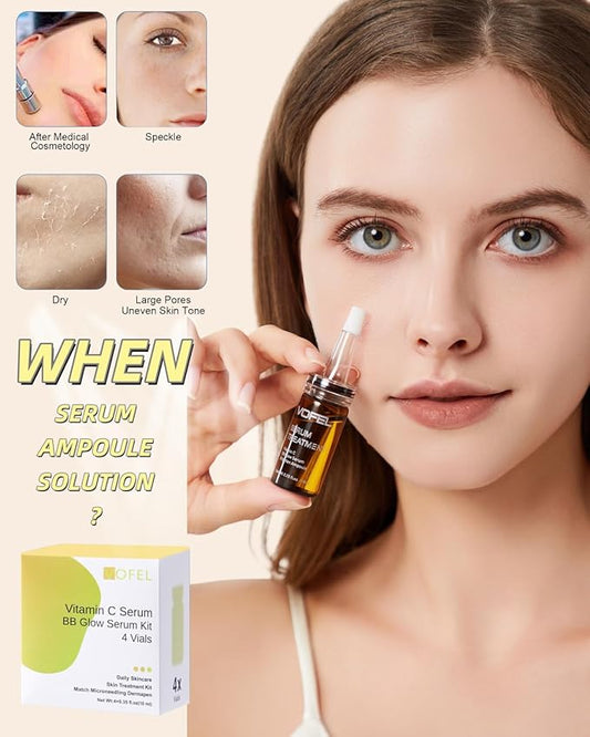 Vitamin C Serum for Face Hyaluronic Acid Serum Anti Aging Moisturizer 0.35 oz 4 Vials Facial Serums BB Glow Starter Kit (4pc new vc kit)