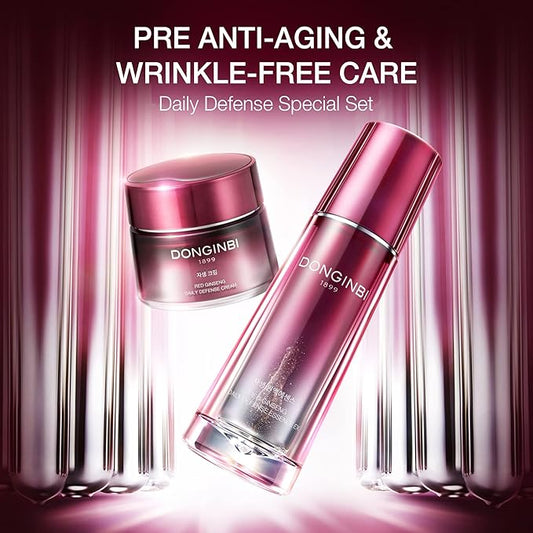 Donginbi Red Ginseng Daily Defense Special Set - Essence & Antioxidant Cream for Face, Korean Red Ginseng Skin Care