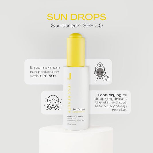 JESS BEAUTY | Face Sunscreen Sun Drops SPF 50 Skin Care Oil with Camellia Sinensis & Squalane | Skincare Fast Drying 1 fl. oz