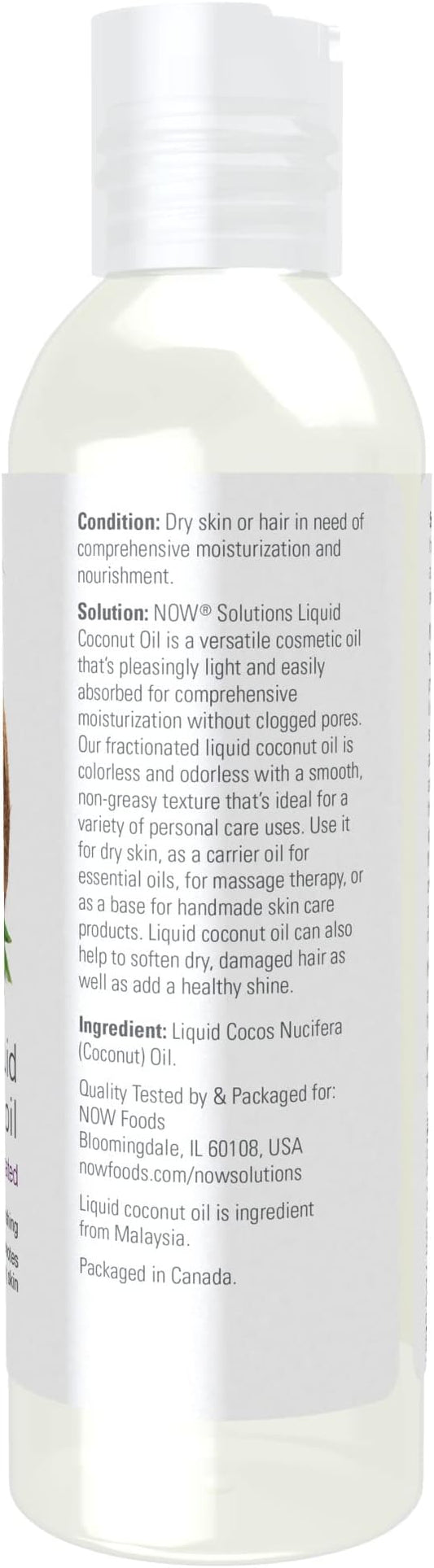 NOW Foods Solutions, Liquid Coconut Oil, Light and Nourishing, Promotes Healthy-Looking Skin and Hair, 4-Ounce