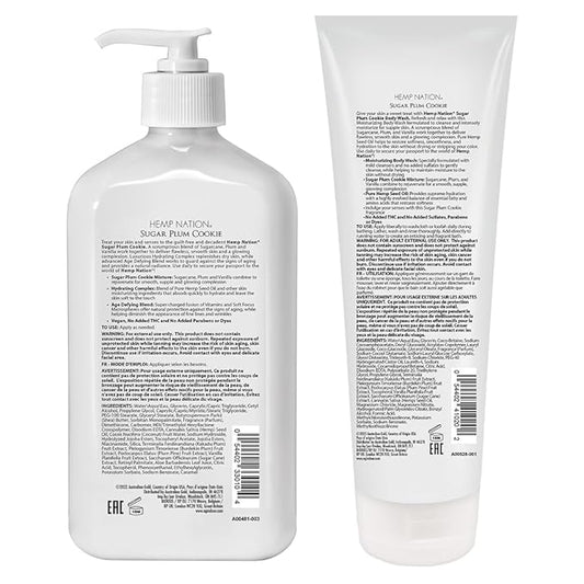 Australian Gold Hemp Nation Sugar Plum Cookie Bundle - Tan Extender Body Lotion (18 FL Oz) and Body Wash (8 FL Oz), Delectable Blend of Sugarcane, Plum, and Vanilla, Pure Hemp Seed Oil