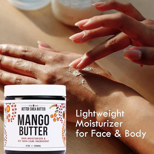 Raw Mango Butter - 100% Pure Mango Seed Butter - Natural Moisturizer for Skin and Hair - Use with Shea in DIY Body Butter, Lip Gloss, Lotion Bar and Soap Making, 8 oz Jar