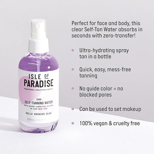 Isle of Paradise Self Tanning Water, Dark (Bronzed Glow) - Color Correcting Self Tan Spray for Bronze Glow, Vegan and Cruelty Free, 6.76 Fl Oz