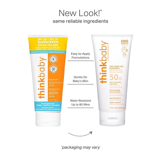 Thinkbaby Safe Sunscreen SPF 50+ - 6oz Family Size (2-Pack)