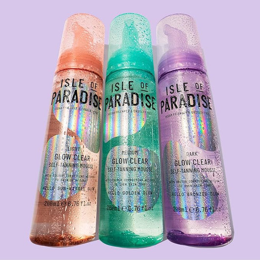 Isle of Paradise Glow Clear Self-Tanning Mousse, Dark (Bronzed Glow) - Color Correcting Tanning Foam for Ultimate Bronze, Vegan and Cruelty Free, 6.76 Fl Oz