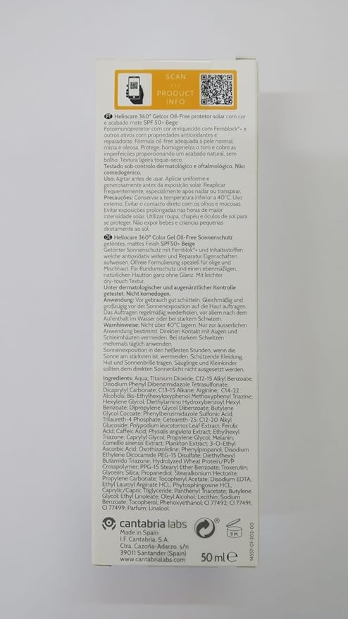 360 Gel Oil-Free - Color Beige - SPF 50+ Tinted Matte Finish/Gel Sunscreen For Face -Combination Skin - Normal Skin - Oily Skin - Spot Prone Skin - 50ml