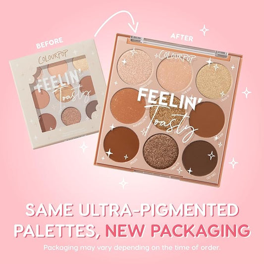 ColourPop Eyeshadow Palette - Eye Makeup Palette with Matte, Metallic, Matte Sparkle & Glitter Finishes - High-Pigment Eye Makeup with a Long-Wearing Formula - Feelin' Toasty (0.3 oz)