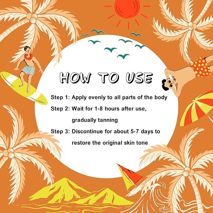 - Refreshed & Easy Absorption - The tanning gel contains carrot oil, which is helpful to moisturize and nourish your skin. The fresh texture makes it easy to apply and absorb, non-greasy, and leaves the skin refreshed and comfortable after use.