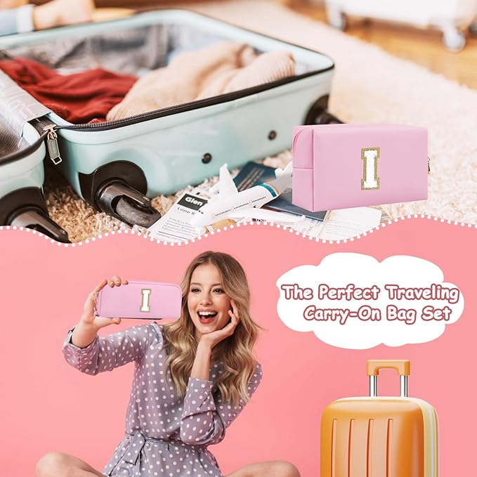 - 【Unique Letter Design】 Our makeup bags feature sewn-on sparkling rhinestone letter designs, so you don't have to worry about them falling off. The unique sparkling rhinestone letter design, with a shimmering gold border and personalized letters, creates a captivating glow, making your makeup bag the center of attention.