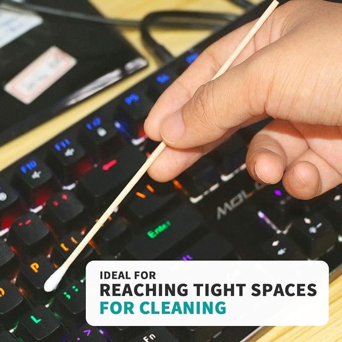 - Long Handle Cotton Swabs:High quality of wooden handle and Wooden handles offer aggressive cleaning.Cotton swabs designed with pure healthy cotton and durable cotton head thar does not easily unravel, is gentle to your skin and items surface.Wood handle is not easy to break, comfortable and safe for use.