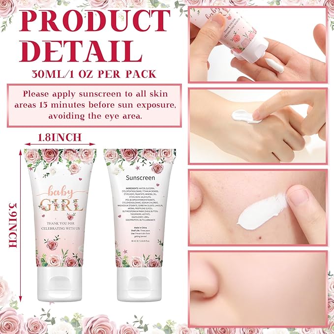 - Pink Flower Design: the cute pink flower pattern and the copywriting of "baby girl", make this mini sunscreen bulk a nice sunscreen gift for a baby shower; Let your guests remember the special day with this delightfully designed sunscreen