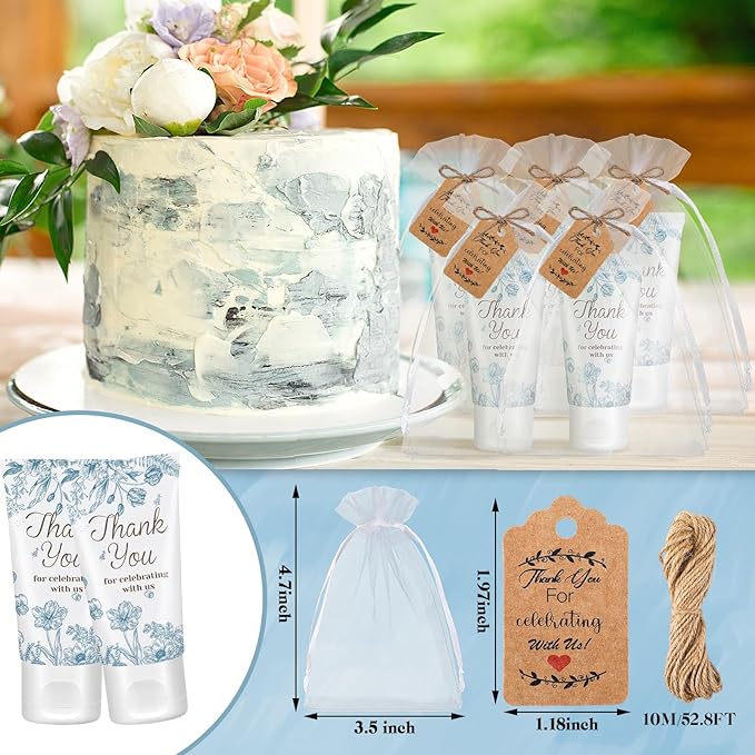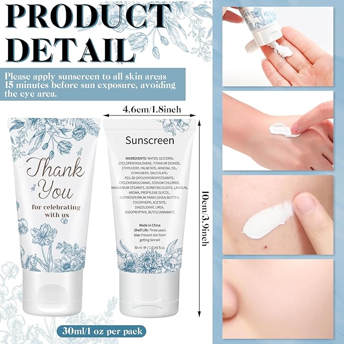 - Package and Size: baby shower mini sunscreen bulk includes 36 travel-size sunscreen, 36 white organza bags and 36 thank you cards, including 10 meters of twine; The size of the sunscreen is approx. 3.94 x 1.81 x 1.18 inches/ 10 x 4.6 x 3 cm, convenient, compact, and suited for all your travelling needs