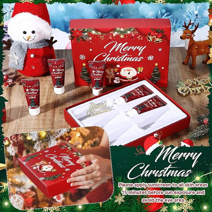 - Package Contents: you will receive 1 box of 6 Merry Christmas mini sunscreens, 1 oz travel size sunscreen lotion, sunscreen size is about 4.13 x 1.81 inches/10.5 x 4.6 cm, packed in an original custom box, the box size is about 262 x 202 x 38mm, sufficient quantity, it is an ideal choice for gift giving